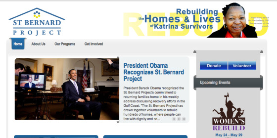 The St. Bernard Project, a nonprofit, community-based organization that carries out its mission through three primary programs: Rebuilding Program, Center for Wellness and Mental Health and Senior Housing Program. Over 900 families are still without their homes in St. Bernard and I want to do every little bit I can do to help get that number to ZERO.